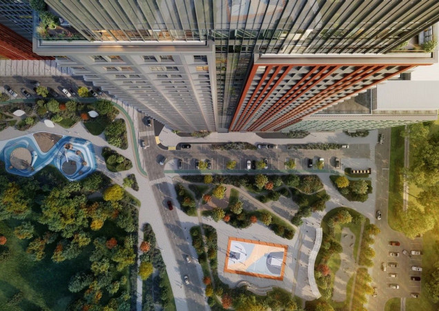Башни и малоэтажные здания, квартиры с террасами, пентхаусы, детский сад и школа, фитнес-клуб