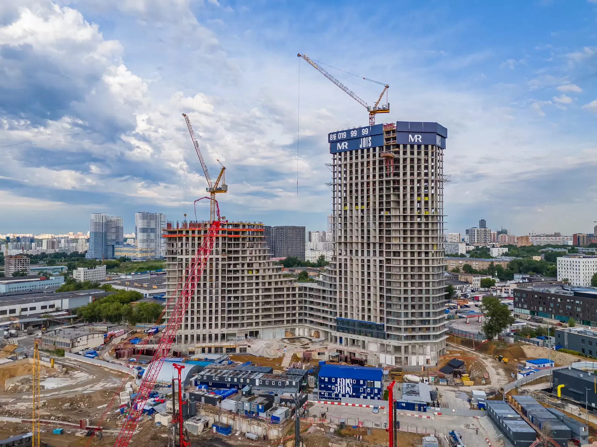 На площадке премиального проекта JOIS в Хорошево-Мневниках задействованы 862 человека. Они возводят 131 тыс. кв. м недвижимости — жилые башни, облик которых напоминает латинские буквы J и U.