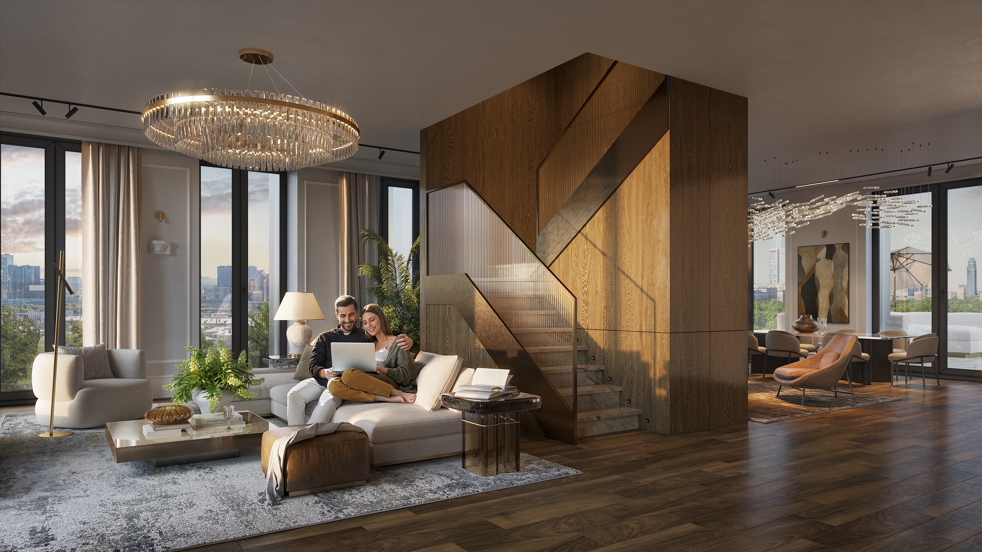 Площадь самого просторного нового пентхауса в Life Time — 582 кв. м. Здесь разместились 9 спален, а на крыше раскинулась терраса с 2 независимыми входами. Стоимость лота — 1 млрд рублей. Ещё 1 уникальная квартира с круговым планировочным решением и площадью 486 кв. м занимает весь 15-й этаж. Её особенность — сервисный вход для персонала и отдельная комната для проживающей в доме няни, личного повара или другого помощника. В двухэтажной скай-вилле на 482 кв. м с видовой террасой появилась мастер-спальня с кабинетом и библиотекой, большая кухня-столовая и отдельная гостиная, а на 2-м этаже — ещё 6 спален для детей.