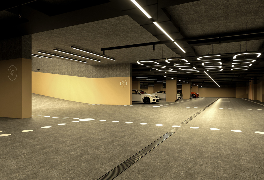 Двухуровневый подземный паркинг на 535 машиномест с увеличенными габаритами для больших автомобилей решает вопрос с парковкой.